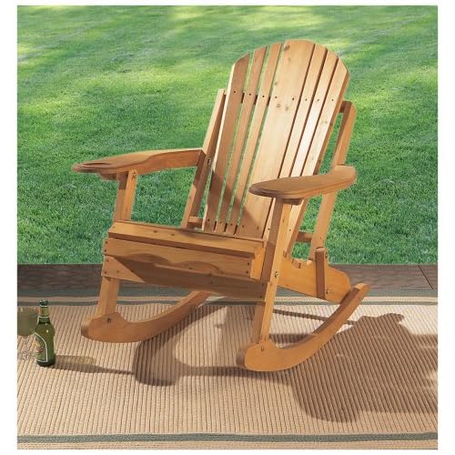 Traditional Adirondack style and quality, FOLDING convenience and the soothing comfort... Rocking Chair! Adirondack chairs have been the American standard for laid-back comfort for more than a century. You're looking at an improved design on this comfort favorite. Features: Solid Canadian fir construction, known for its weight, stability and hardness; Individually hand-stained for all-weather durability; Treated to resist UV damage, fading and weather; Easily fold for storage (must remove rockers on); Some assembly required. High back and wide armrests for comfort; Rust-resistant metal hardware; Stained for all-weather durability; 36 1/2 x 29 x 35"h. Please Note: This is a Heavy / Bulky item. $5.00 for heavy / bulky shipping and handling will be charged in addition to regular shipping and handling. Folding Adirondack Rocking Chair. see detail!